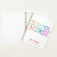 Customized School Nurse Rainbow Watercolor Typography Planner. Rainbow of colors spells school nurse. Personalized with name and school name. www.SamAnnDesigns.com