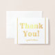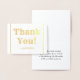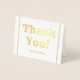 This customized gold foil thank-you greeting card design features the message "Thank You!" on the front, along with a customizable message on the inside. It could be used to show appreciation to somebody who has attended a wedding, a funeral, a graduation, or some other event.