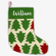 Vintage colored Christmas Trees cover the front of this customized stocking. Add the name of your favorite elf to this essential Christmas decoration. Pine green and wine colors are the color vibe of the season.