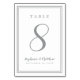 A template for any number this simple, minimalist and elegant Wedding Table Number design features a contemporary design with a double frame border in Ultimate Gray on a crisp white background. Chic design provides timeless yet modern sophistication. Personalize wedding table design with your name, wedding date and table number in trendy gray lettering and script. The back of the card is a duplicate of the front. Easily customize and order one for every table with the individual table numbers.