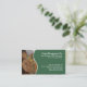 A business card template for forestry and timber companies with a photo of deciduous woodland in autumn colors with a close-up of the cut ends of two large logs in the foreground. On the front are the company name, address and contact details on a dark green panel separated from the photograph by a white wavy line. On the reverse is space for an employee's name and position, and any other information. This is on the white colored card stock, with a customizable background colour on the reverse.