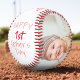 Cute 1st Father`s Day Pink Script 2 Photo Collage Baseball. Cute design for the new dad. Trendy script Happy Father`s Day, message with name and year. Add 2 favorite photos and make a sweet gift for a new dad for Father`s Day.
