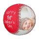Cute 1st Father`s Day Red Script 2 Photo Collage Baseball. Cute design for the new dad. Trendy script Happy Father`s Day, message with name and year. Add 2 favorite photos and make a sweet gift for a new dad for Father`s Day.