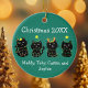 This cute cat Christmas ornament features a row of 4 black kittens wrapped in Xmas lights. Customize this pretty green holiday ornament for a friend or family member who loves their four cute kitties. Monogram their names in white under the adorable felines.