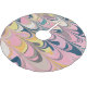 This stylish holiday Christmas tree skirt features a unique design of abstract marble paint swirls in pink, navy blue, and taupe.