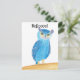 Cute blue and purple abstract owl is printed on custom postcards. The text above the owl says, Helloooo! The owl has a light blue body and purple and blue feathers, and purple ears. This is bound to bring some smiles. Thank you for shopping at CherylsArt on Zazzle.