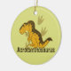 Acrocanthosaurus was a carnivorous dinosaur from the Cretaceous period. It was best known for the high neural spines running along it’s back and neck. This design features a cute version of an Acrocanthosaurus chewing on a bone.