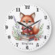 Cute add text fox reading lovers large clock