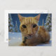 Cute Adorable Ginger Kitty Winter Forest Postcard