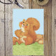 This vintage image has a sweet, cute little brown squirrel sitting in the grass with a blue sky behind him. He is holding an acorn and is surrounded by more acorns and nuts. He is licking his lips anticipating his delicious meal of nuts. See my store Art by MAR for matching products with this design.