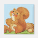 This vintage image has a sweet, cute little brown squirrel sitting in the grass with a blue sky behind him. He is holding an acorn and is surrounded by more acorns and nuts. He is licking his lips anticipating his delicious meal of nuts. See my store Art by MAR for matching products with this design.