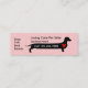 Cute affordable pet sitting business card template including weiner dog graphic with a heart shape and editable custom text you can personalize online. Presented in a compact size you can share with customers in a budget friendly design.