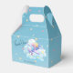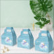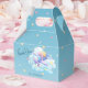 A favor box featuring a cute little airplane flying through clouds on a blue background with colorful stars, personalized with your thank you message to guests for attending the baby shower.