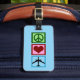 Peace Love Flying luggage tag gift with a peace sign, heart, and plane on a blue square. A nice present for a flight attendant, pilot, or person who loves to fly. Use for all of the times you take suitcases with you to travel.