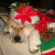 The name of this funny sleepy cute Japanese akita on this unique Christmas jigsaw is named Asia, she is a red akita, part American type akita and part Japanese type akita. Asia is a rescue dog and she loves being spoiled at Chritmas time, she looks very happy sleeping with her pretty christmas hat at a jaunty angle and covered in festive decorations and poinsettias, she loves to wear her red Santa hat. This cute akita picture gives this puzzle a very Christmassy feel. This special sleeping akita looks so relaxed, she’ll make an original gift for someone who loves cute dogs and the akita breed.