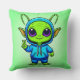 Cute Alien Character Posing in Colorful Outfit Throw Pillow