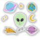 Cute Alien Head with Planets, UFO and Stars Sticker