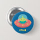 Let kids go on an outer space adventure with this pin it button with a cute and happy green alien with a heart shaped antennae which means it comes in peace and is out to make friends. It is travelling in a tiny spaceship across the galaxy. Great for kids who love space themes, rockets and UFOs. Personalise with child's name.