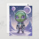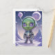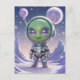 Embark on a cosmic journey with this unique alien postcard! Featuring a charming green extraterrestrial in a futuristic silver suit, surrounded by swirling galaxies and glowing planets, this card is perfect for spreading intergalactic joy through postcrossing. The vibrant colors and playful design will delight recipients worldwide. It’s ideal for sharing messages of friendship, curiosity, or simply celebrating the wonders of space