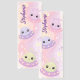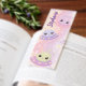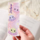 Explore the cosmos with this charming cute kawaii personalized bookmark, featuring adorable alien creatures piloting colorful UFOs. Whimsical aliens with big, sparkling eyes and blushing cheeks navigate tiny pink, lavender, and mint green UFOs, leaving magical trails of stardust. The watercolor-inspired background blends warm pastel pinks, peaches, and lavenders, dotted with twinkling stars, puffy clouds, and playful starbursts. Delicate foliage and floating star shapes create a celestial garden feel, while the aliens' friendly faces add playfulness and wonder. Perfect for readers and space enthusiasts who love kawaii style, this personalized accessory brings cosmic cuteness to any book collection.