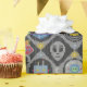 This Cute Alien wrapping paper has a cute Nordic alien sweater pattern based off of the theme of classic Fair Isle knitted designs. The pattern is of grey and black circles and diamond stripes. Each shape has different cute retro alien motifs in it. You have cute retro robot, UFO abduction, a space ship with green alien, a grey alien head, solar system, an alien plant, retro ray gun and a star fighter. In-between the pattern are moons, and stars.