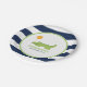 Adorable birthday party plates feature a cute illustration of a smiling alligator on a stripes background and can be personalized with your child's name or message of your choice.