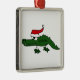 Cute Alligator Wearing Christmas Hat Metal Ornament
