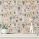 Cute Alpaca Girl Modern Kids Pattern Wallpaper features cute alpacas with rainbows and cactus plants on a peach background. Perfect for kids bedrooms, nursery decor, home, office and party decor. Created by Evco Studio www.zazzle.com/store/evcostudio