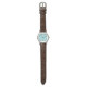 I like the illustrative watch with the lady on it. It is a great reminder that I am blessed and it has a very sturdy leather band. The colors are true and vibrant. Love the color of the Leather also. Very nice.