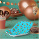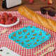 Paper plate with cute alpaca pattern on turquoise background