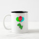 Cute And Angry Dino Flying With Party Balloons Two-Tone Coffee Mug