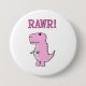 Cute And Angry Pink Cartoon T-Rex Dinosaur Button