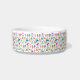 This is a heavy, durable bowl decorated with Tibbies of many colors, the perfect size for hungry/thirsty Tibs. The design is interesting and printing clear.