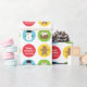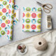 Wrap the presents for friends and family with this cute and colourful Christmas circle pattern wrapping paper. It includes 4 circle, the yellow circle contains Gingerbread man with yellow buttons and frosting, the green circle with a Christmas pudding decorated with mistletoe, the bright blue circle with a snowman wearing a top hat and the red circle for you to personalise your own message and name for the recipient. A bright coloured, jovial design that is sure to spread the Christmas cheer this festive and holiday season.