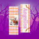 Cozy ghosts and pumpkins, along with a frighteningly cute black cat adorn this hand drawn plaid book club bookmark. Personalize this design with your name on the back.