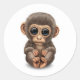 Cute and Curious Baby Monkey on White Classic Round Sticker
