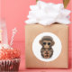 This adorable design features a small brown baby monkey with large ears. The monkey is sitting down with its feet beside each other and hands in its lap. The tiny monkey is looking forward with large round eyes. Its head is slightly tilted to one side creating a curious look and feel. The over sized head and small body along with the details in the fur create a beautiful combination of a cartoon and realistic look. This unique design is perfect for all monkey and animal lovers.