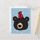 This simple, adorable illustration features a cartoon black bear head with a cardinal perched on top against a blue polka dot background. So cute, it appeals to children and nature loving adults alike! Makes a fun surprise for a friend's mailbox!