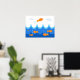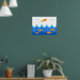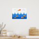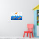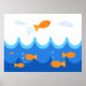 In this cute and fun illustration, an orange fish flies above waves while other orange fish swim in the water below. Decorate your favorite child's room with this fun, cute, and playful poster.