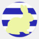 Stylish And Cute Yellow Bunny / Rabbit Silhouette, Blue and White Stripes Background Wedding Favor / Other Purpose Sticker to add to your accessories collection. A cool gift / present idea for all who love custom design personalized items, positive vibes, fun, joy etc. Keywords: birthday party, pet, animal, Easter, pink, coral, turquoise, green etc.
