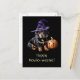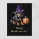 Happy Howlo-weenie! A Halloween postcard featuring a cute dachshund puppy dog with a witch hat and Jack O' Lantern. Sure to bring a smile!