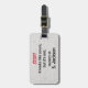 This STOP luggage tag alerts other travelers that while the bag might look the same - it doesn't belong to them. Red and black lettering on a grayish, textile print. Personalize with your name.
