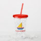 This adorable kids acrylic tumbler features a simple toy sailboat in bright shades of red, blue and yellow on the front and back. Personalize with your choice of name or special text on each side.