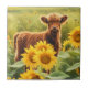 Cute and Whimsical Highland Calf Sunflowers Ceramic Tile