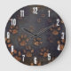 Cute Animal Dark Rustic Paw Print Pattern Large Clock