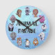 Cute Animal Parade Menagerie Wall Clock features 12 of our most popular animals as the numbers around a textured blue background. Great for kid's rooms or nurseries. Join the animal parade and share some smiles. Custom designs available.