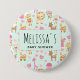 Baby shower button with a whimsical pattern featuring a collection of delightful children's toys and animals.
