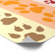 A cute design with several rows of animal paw prints in natural colors like brown, yellow, red and orange on a striped pattern. Some paws have claws and others do not.