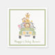 This gender-neutral baby shower napkin features a cute illustration of baby animals (lion, zebra, elephant, monkey and giraffe) piled into a safari vehicle and the mother's name and "Baby Shower" in coordinating green script.