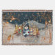Beautiful Christmas snow hill and dark blue sky Blanket with cute characters and gold elements. Great for kids/ living room. The squirrels, Snowman, a girl and a baby, a fox, mice, an owl, ravens, and a little bird will bring out the right Christmas spirit. Place it on sofa or on kids bed.